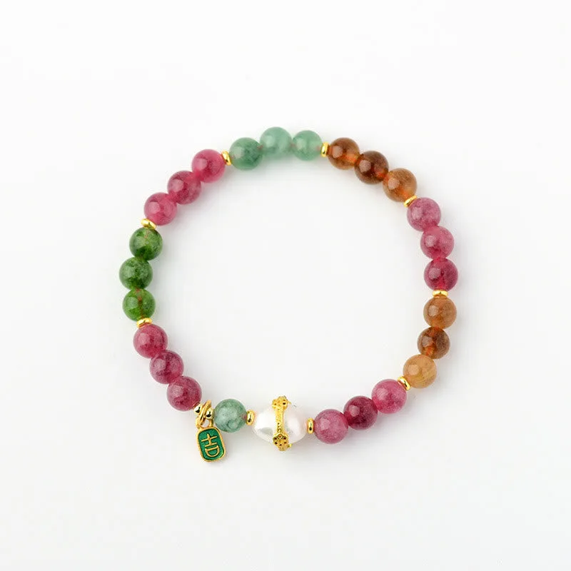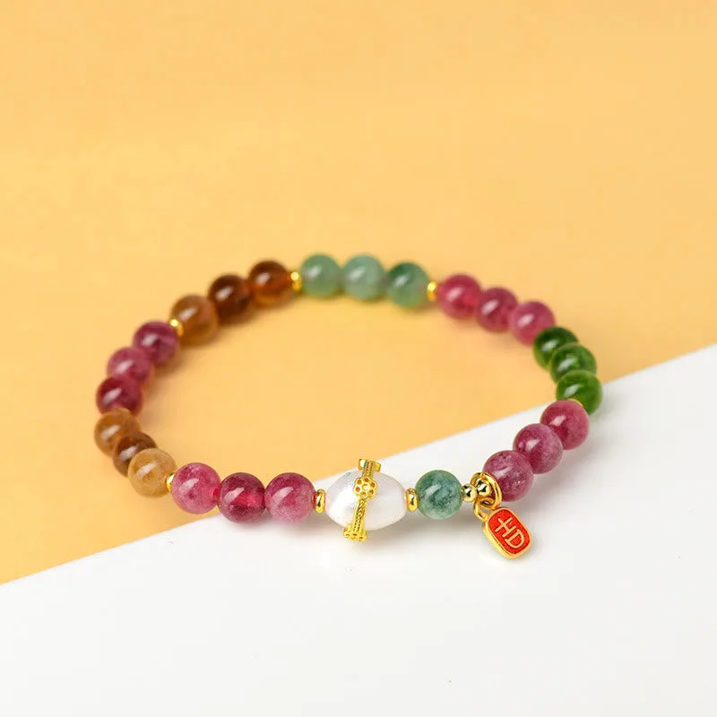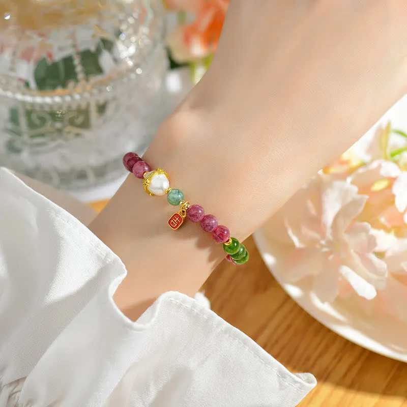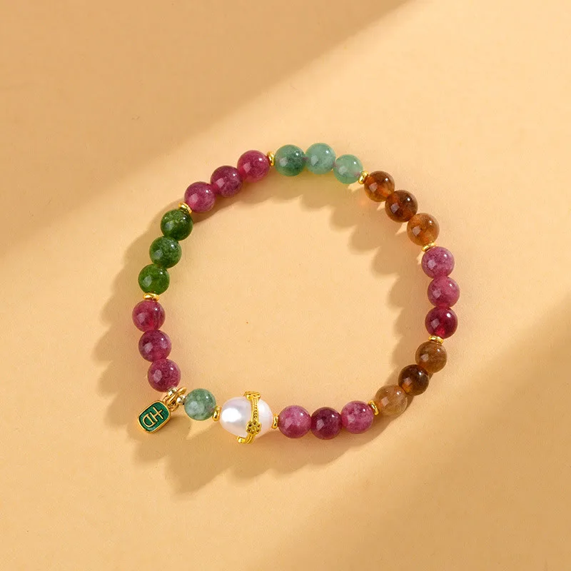 - Material: Tourmaline. Chalcedony. Pearl