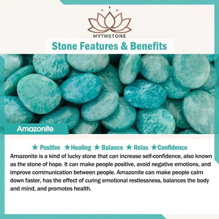 Amazonite is a kind of lucky stone that can increase self-confidence. also known as the stone of hope. It can make people positive. avoid negative emotions. and improve communication between people. Amazonite can make people calm down faster. has the effect of curing emotional restlessness. balances the body and mind. and promotes health.