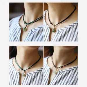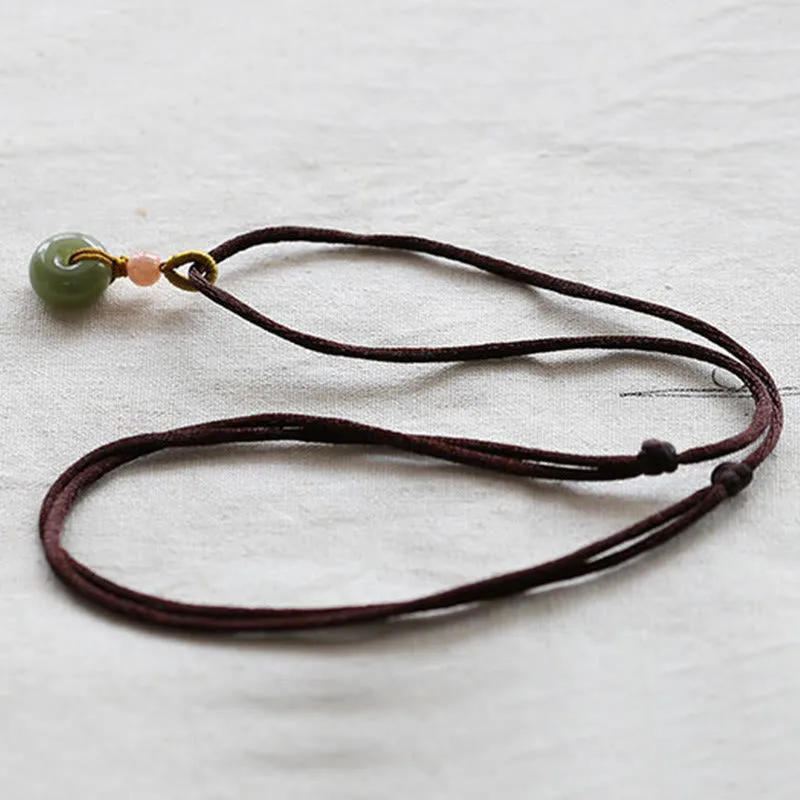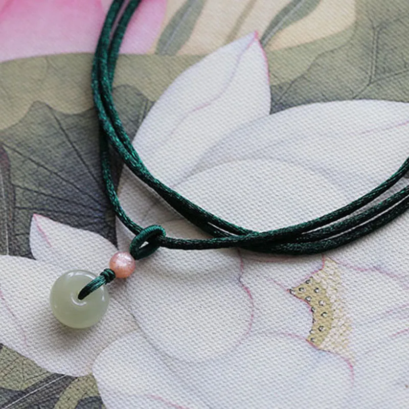 Discover the fusion of symbolism and style with our Mythstone Natural Round Jade Peace Buckle Lotus Abundance String Necklace Pendant. Crafted with genuine jade. this pendant showcases a harmonious combination of the peace buckle and lotus symbols. representing inner peace and abundance. Elevate your energy while adorning yourself with this meaningful and elegant piece.