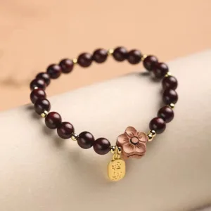Discover the ancient and mysterious qualities of Sandalwood in our Peach Blossom Charm Bracelet. Sandalwood’s calming effects and protective properties combine with the unique powers of Small Leaf Red Sandalwood. offering a bracelet that promotes relaxation. healing. and balance.