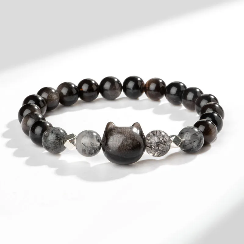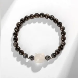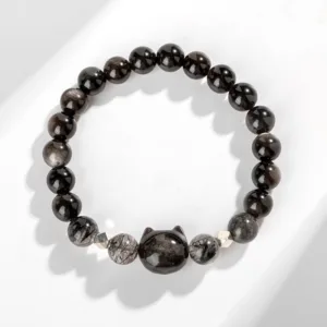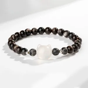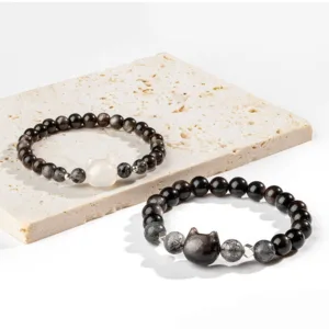 Experience the protective embrace of the Mythstone’ Cat Head bracelet. Crafted with natural silver sheen Obsidian. renowned for its shielding properties against negativity. this bracelet is more than just an accessory. It’s a symbol of protection. featuring a charming cat head design. perfect for cat lovers and spiritual seekers alike.