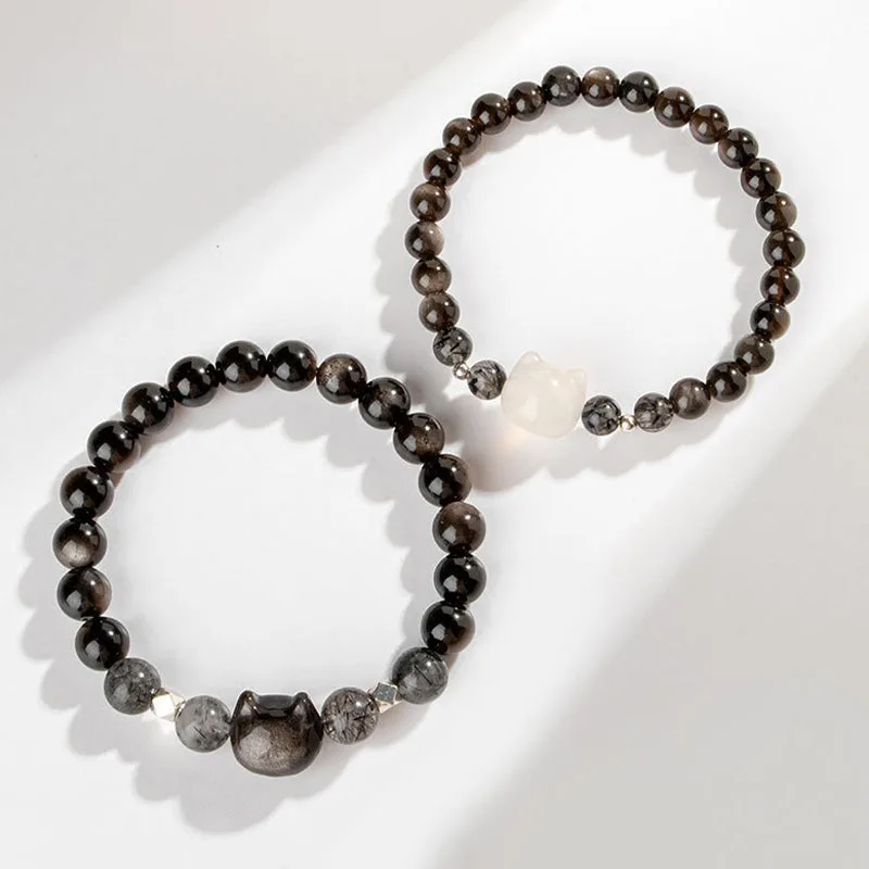 - Material: Silver Sheen Obsidian. White Agate. Black Rutilated Quartz
