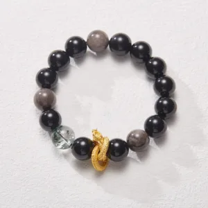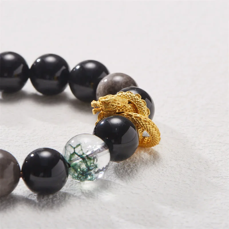 - Material: Silver Sheen Obsidian. White Crystal. Copper Gold-plated Dragon Accessories