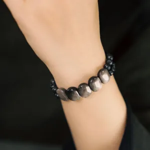 Silver Sheen Obsidian is believed to bring advantage throughout life. It improves perception. sharpens the senses and intellect. promotes articulate communication to others. and helps keep personal likes and dislikes from affecting rational decision-making. Silver Sheen Obsidian is a soothing. protective stone for those of us who have issues with a possessive parent or partner. or who need help keeping firm boundaries.