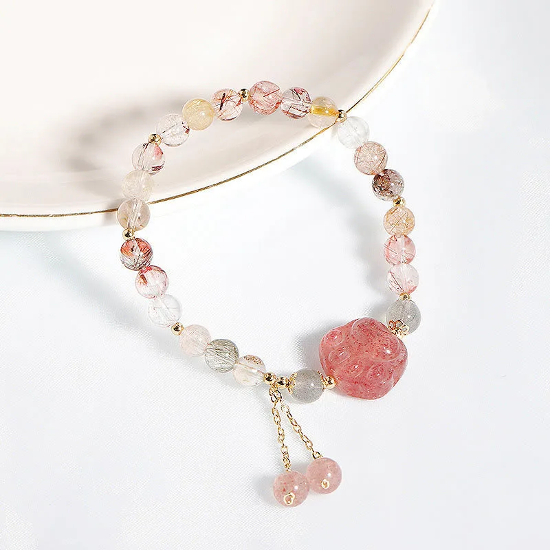 - Material: Strawberry Quartz. Colorful Rutilated Quartz. Moonstone