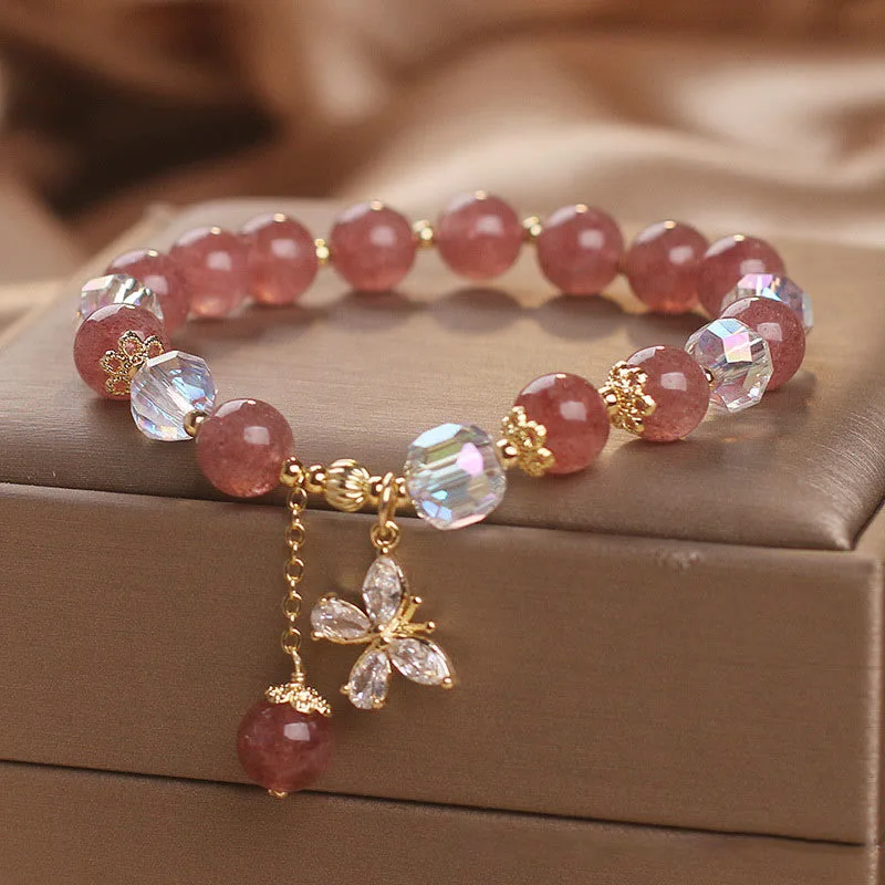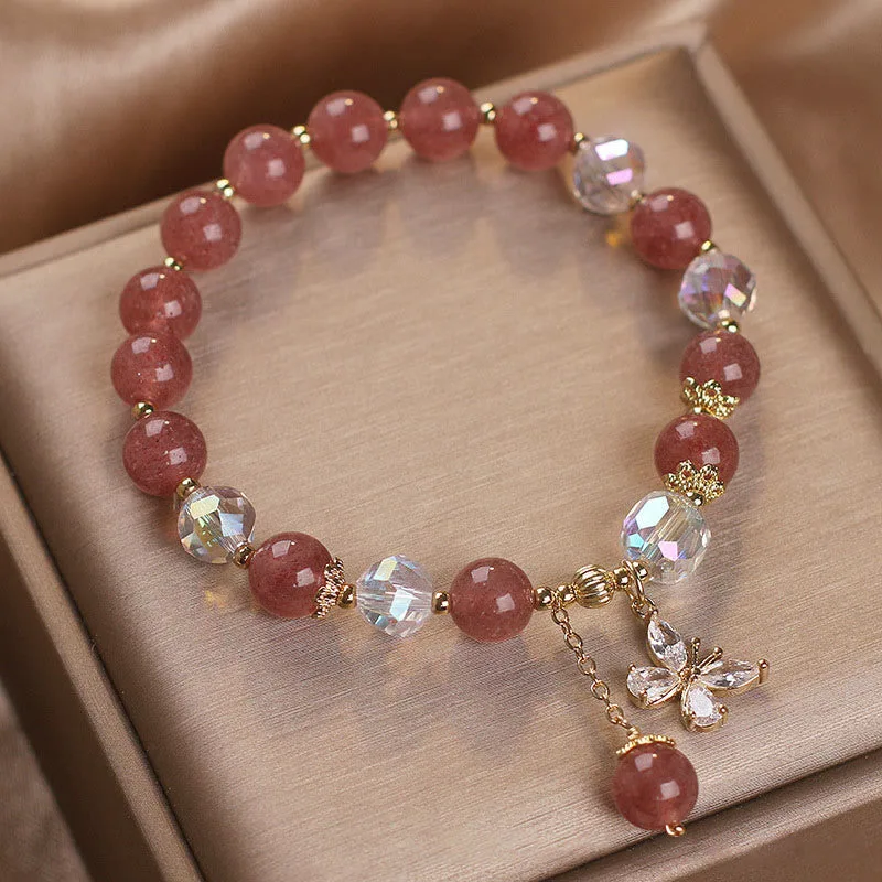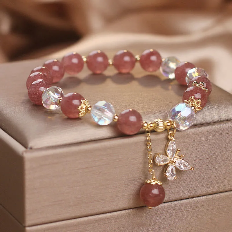 Awaken love and healing with the Mythstone Bracelet. Crafted from natural strawberry quartz. it’s adorned with a butterfly charm. symbolizing transformation and rebirth. A beautiful piece to nurture your heart and soul.