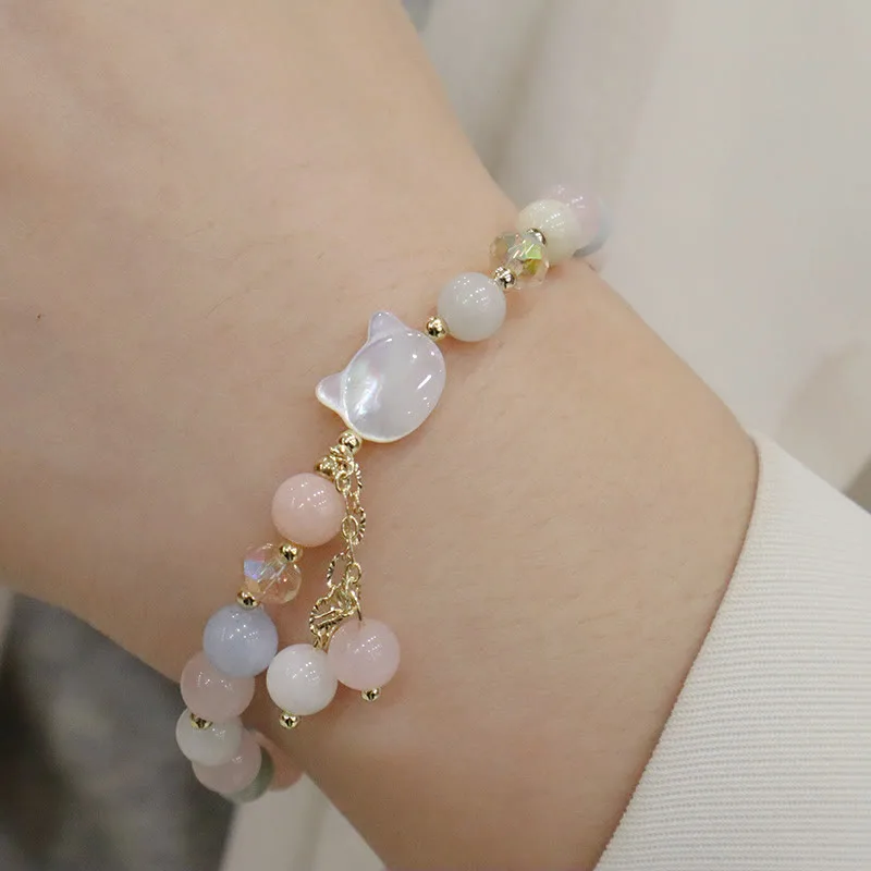 Mythstone Natural Strawberry Quartz Morganite Tridacna Stone Cat Love Bracelet