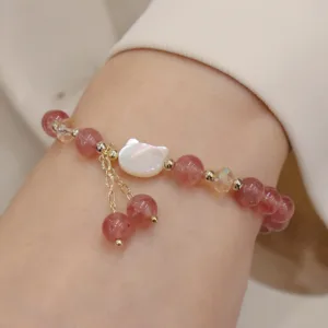 Be the first to review “Mythstone Natural Strawberry Quartz Morganite Tridacna Stone Cat Love Bracelet”