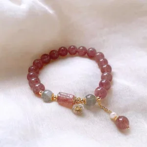 The “Strawberry Quartz Charm Bracelet” radiates positivity and elegance. Crafted with natural strawberry quartz and adorned with a zircon flower. this bracelet is perfect for those who love unique. meaningful jewelry that not only enhances their style but also promotes a sense of well-being and positivity.