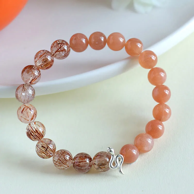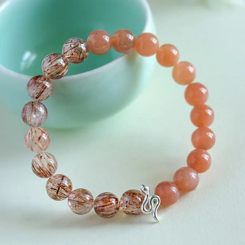 - Material: Sun Stone. Rutilated Quartz. Silver Sheen Obsidian. 925 Sterling Silver(Snake)