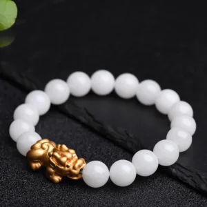 White Jade is said to be a stone of protection! White Jade brings the wearer good fortune. luck. and protection. improves and enhances thinking and clarity. calms the soul while uplifting your heart. and makes wishes come true. Besides. it can protect yourself and your loved ones from negative energy.