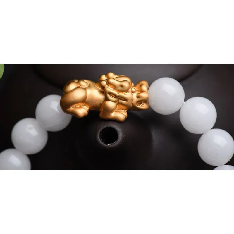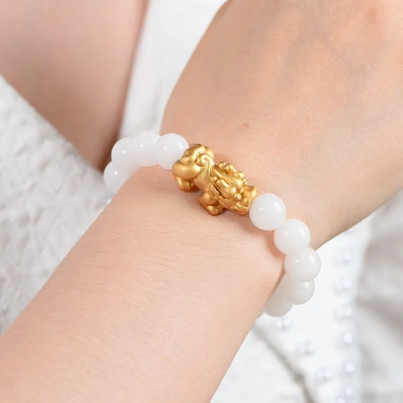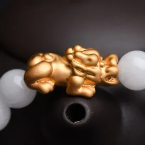 The Pixiu provides a minimum of six blessings as follows: Conducts good luck and fortune. Generate good Feng Shui or Earth luck. Enhances wealth and riches. Protects individuals and building. Protects against evil forces. obstacles. and hardship. Brings unexpected windfall luck. One of the popular ways to retain a Pixiu is to wear it on a bracelet.