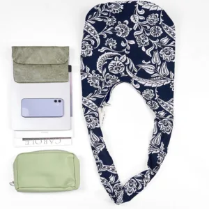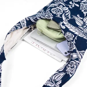 Flower Cotton Crossbody bag merges functionality with serene beauty. The delicate white floral patterns on a navy blue backdrop evoke tranquility and connection to nature. Crafted from soft. durable cotton. this bag carries your essentials while offering a sense of peace and mindfulness in your daily life. It serves as a gentle reminder to appreciate the simple beauty that surrounds us.