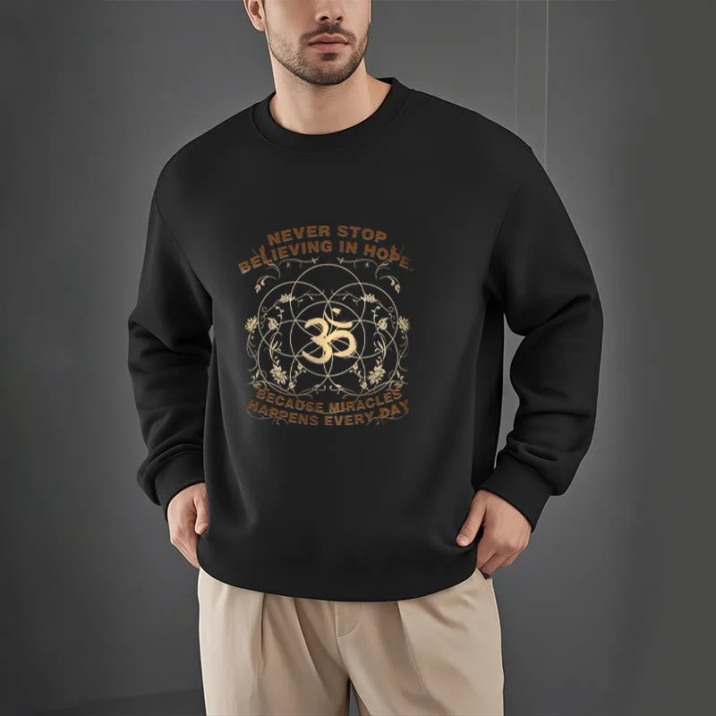 Mythstone Never Stop Believing In Hope Om Lotus Design Fleece Lined Polyester Sweatshirt