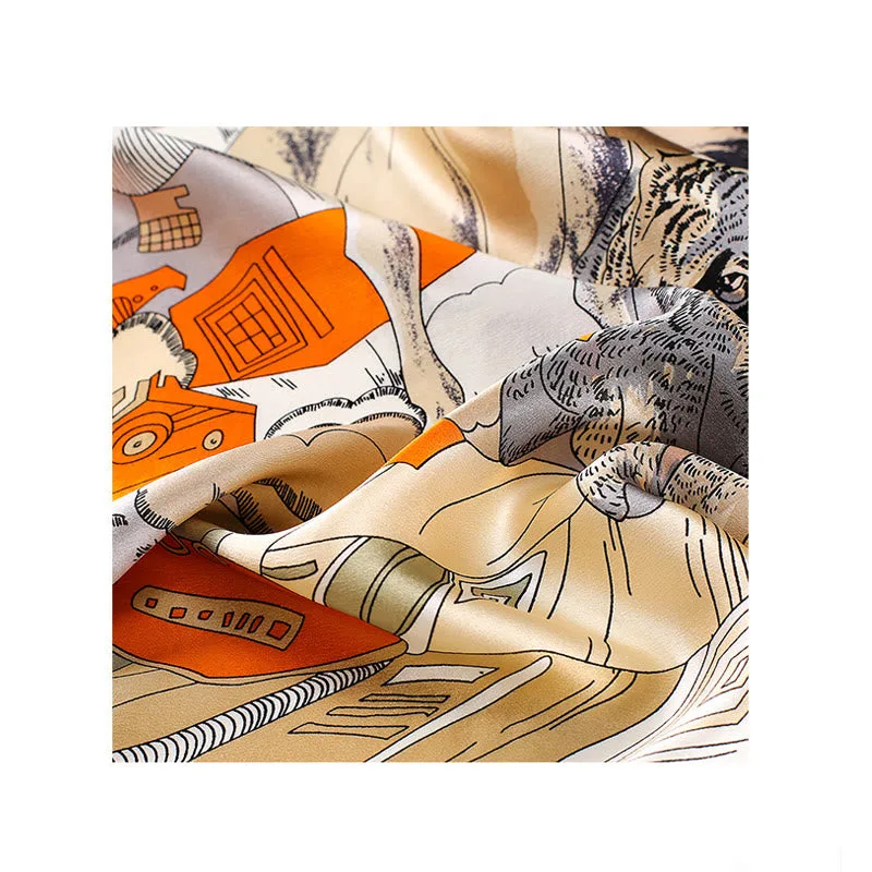 The design inspiration comes from oil paintings. snow scenes of the city. blue lotus in the ancient castle. sailing travel. animal world. The bold color matching makes the color of the silk scarf more brilliant. bringing you a unique charm.