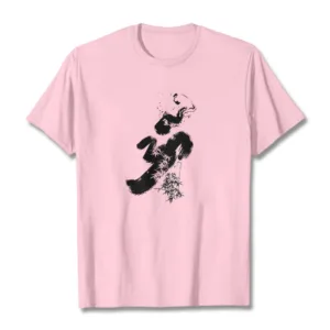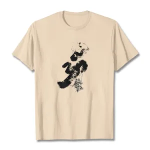 - DESIGN INSPIRATION: This T-shirt features a striking brushstroke design in Sanskrit. likely representing the concept of “Om.” Accompanied by bamboo elements. it symbolizes harmony. spiritual connection. and the essence of existence. promoting a peaceful and balanced mindset.
