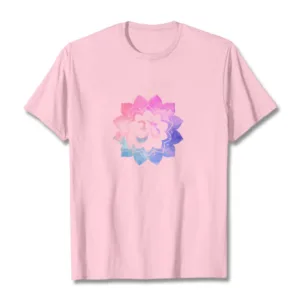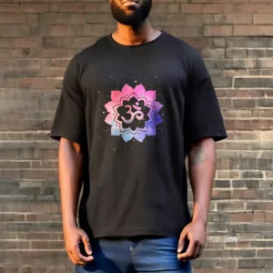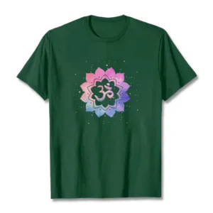 - DESIGN INSPIRATION: This T-Shirt features the “Om” symbol surrounded by a vibrant lotus flower design. representing spiritual awakening and enlightenment. The combination of colors and patterns emphasizes harmony and the connection between the individual and the universe.