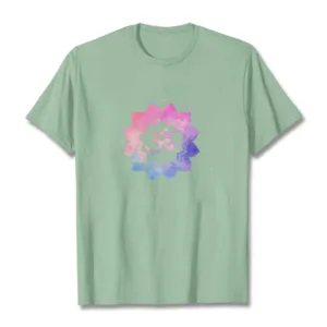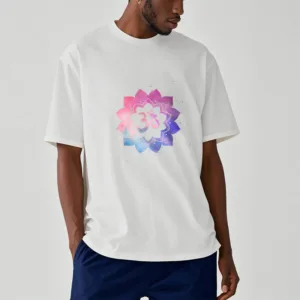 Om Lotus Cotton Tee T-shirt features a central Om symbol encircled by a vibrant lotus-inspired design. symbolizing spiritual awakening and peace. Made from soft cotton. this T-shirt embodies unity and mindfulness. The colorful lotus ring adds depth and meaning. reflecting harmony and spiritual growth. making it a meaningful choice for those embracing inner balance and serenity.