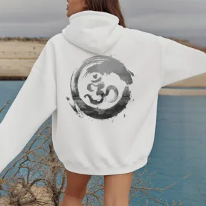 • DESIGN INSPIRATION: This hoodie features a design inspired by Sanskrit. prominently displaying the “Om” symbol. which represents the essence of the universe in Hindu philosophy. The artistic brushstroke adds a modern touch to this spiritual motif.