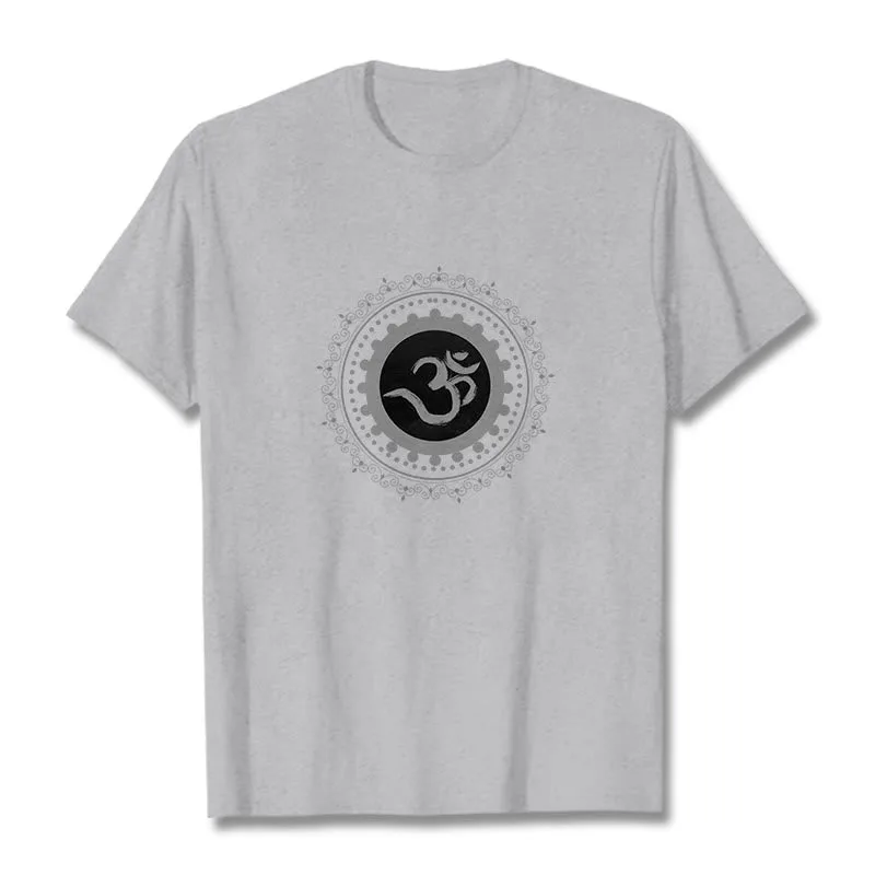 - DESIGN INSPIRATION: This T-Shirt features the “Om” symbol at its center. surrounded by a mandala pattern that symbolizes the universe and interconnectedness. The design represents spiritual harmony. meditation. and the journey towards inner peace and enlightenment.