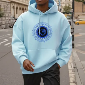 - DESIGN INSPIRATION: This hoodie features the “Om” symbol at its center. surrounded by a mandala pattern that symbolizes the universe and interconnectedness. The design represents spiritual harmony. meditation. and the journey towards inner peace and enlightenment.