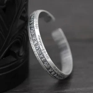 Introducing our exquisite Om Mani Padme Hum Heart Sutra Mantra Lotus Peace Meditation Cuff Bracelet Bangle. Made with high-quality materials and attention to detail. this bracelet bangle is a stunning piece of jewelry. Its intricate design features the powerful Om Mani Padme Hum mantra. the symbol of the lotus flower. and the calming Heart Sutra mantra. Perfect for daily wear or meditation practice. this peaceful and stylish cuff bracelet bangle is sure to become a cherished addition to your collection.