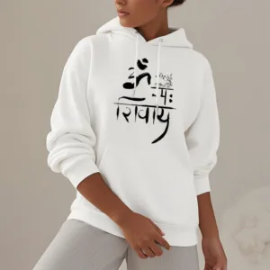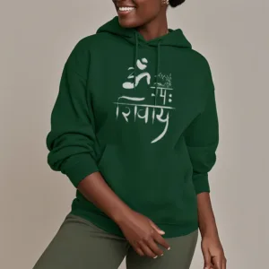 Om Namah Shivaya Crane Bamboo Polyester Hoodie combines the powerful mantra “Om Namah Shivaya” with an elegant crane and bamboo design. symbolizing peace. longevity. and spiritual grounding. Crafted from fleece-lined polyester. this hoodie offers warmth and comfort. serving as a reminder of inner calm and resilience. Perfect for those who appreciate mindful living and seek balance in their daily journey.