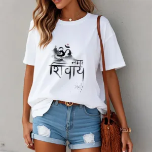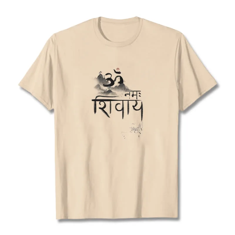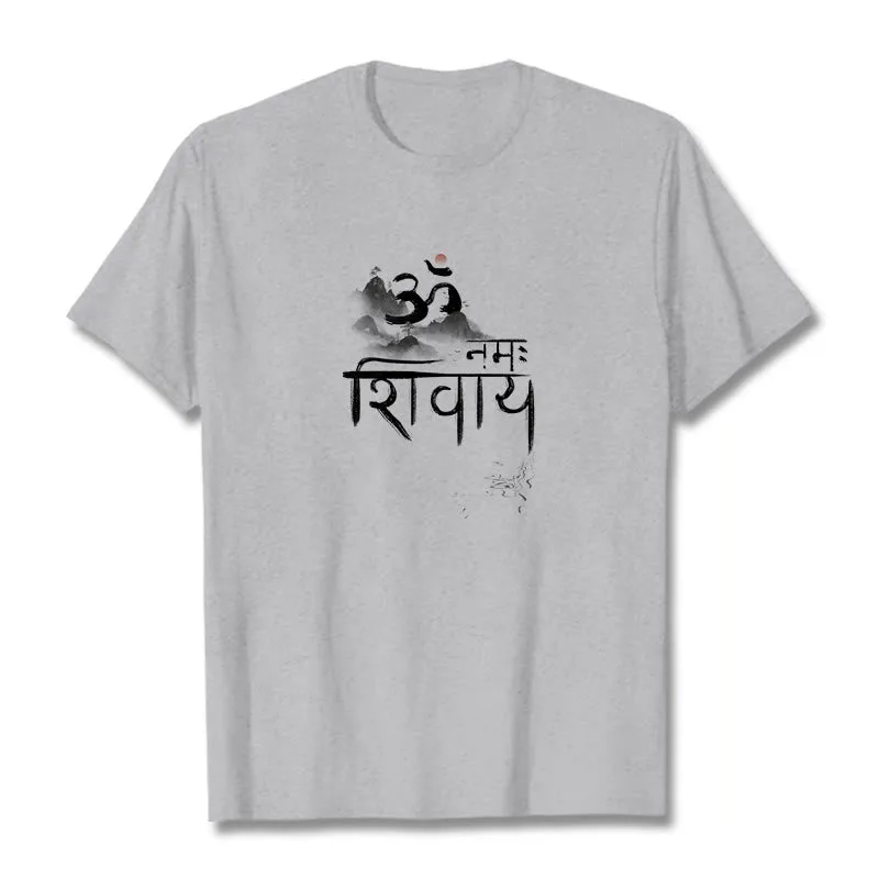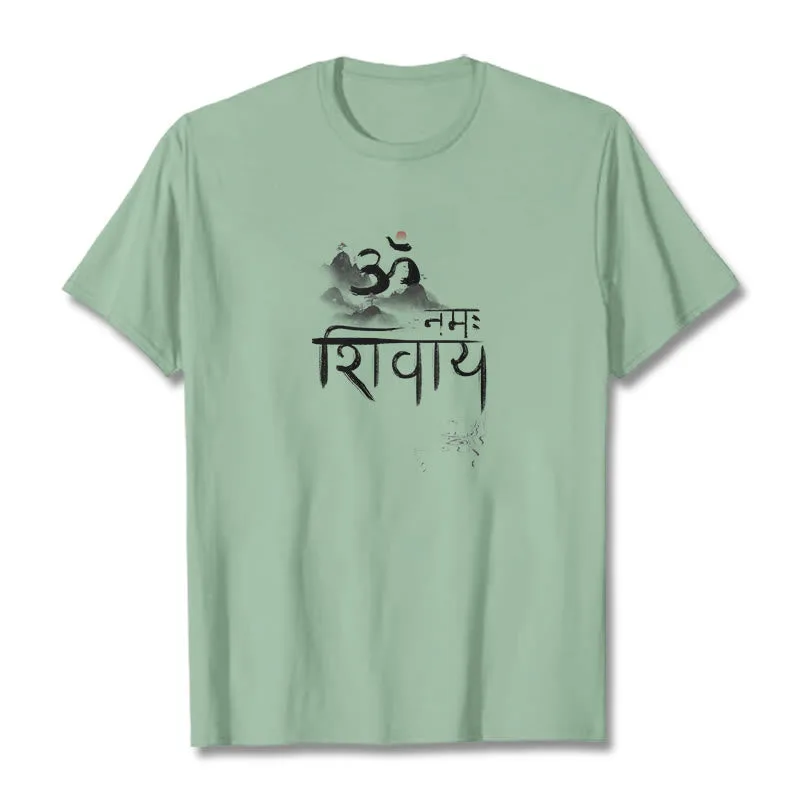 OM NAMAH SHIVAYA Mountain Cotton Tee T-shirt features a captivating mountain design symbolizing stability. strength. and spiritual growth. Made from premium cotton. this t-shirt ensures ultimate comfort and breathability throughout the day. The inspiring graphic serves as a daily reminder of one’s spiritual journey. encouraging mindfulness and connection to nature. making it a valuable addition to any conscious individual’s wardrobe.