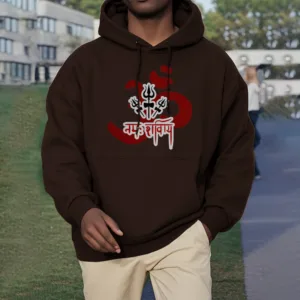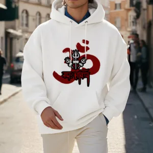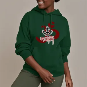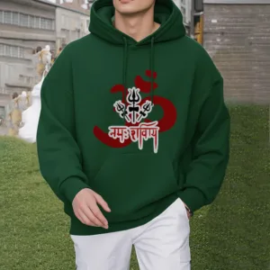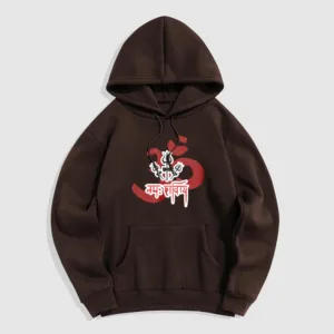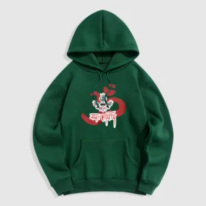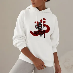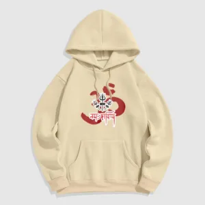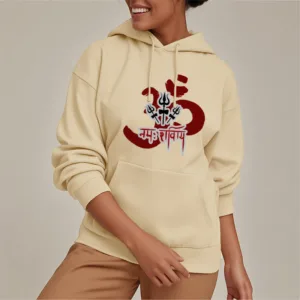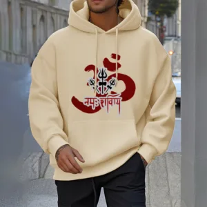 Three Small Tridents Polyester Hoodie features the sacred mantra “Om Namah Shivaya” along with three small tridents. symbolizing protection. resilience. and spiritual focus. Crafted from warm. fleece-lined polyester. this hoodie provides comfort and serves as a reminder of inner peace and strength. Ideal for those who appreciate symbols of grounding and mindfulness in their daily lives.