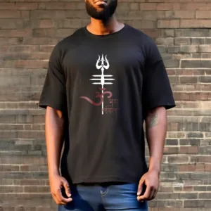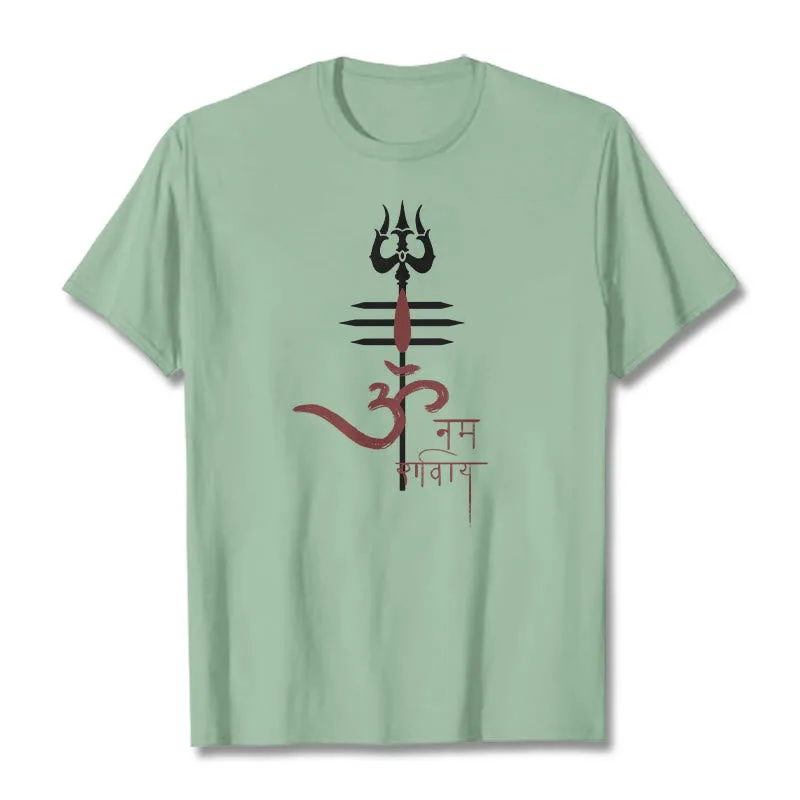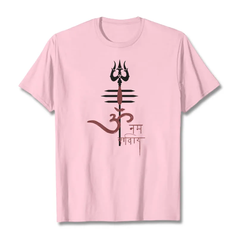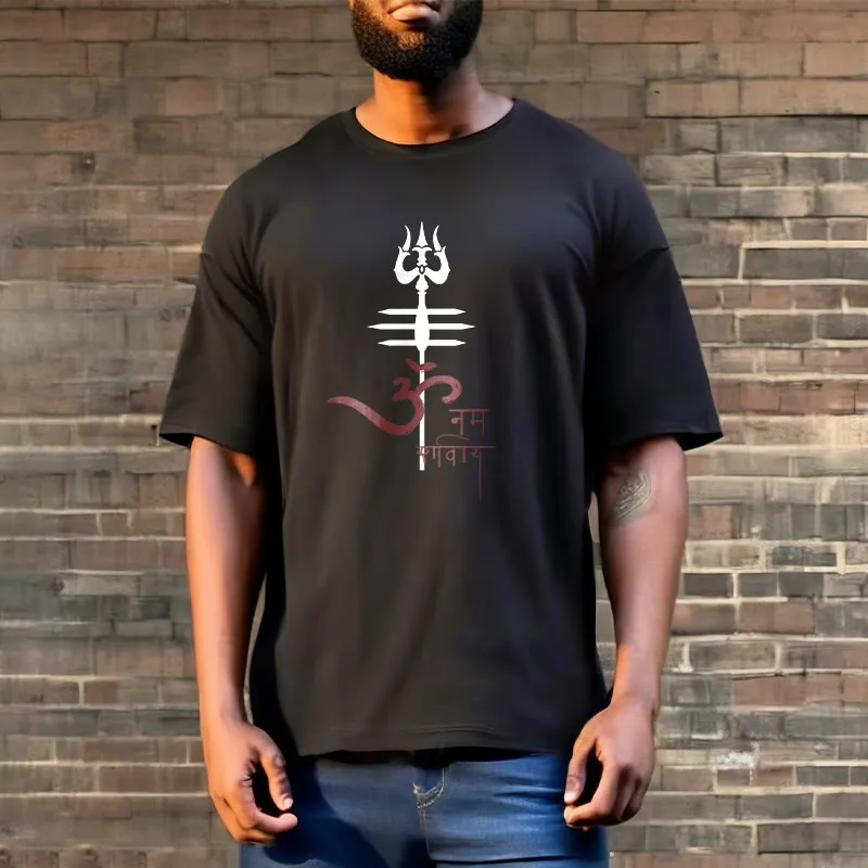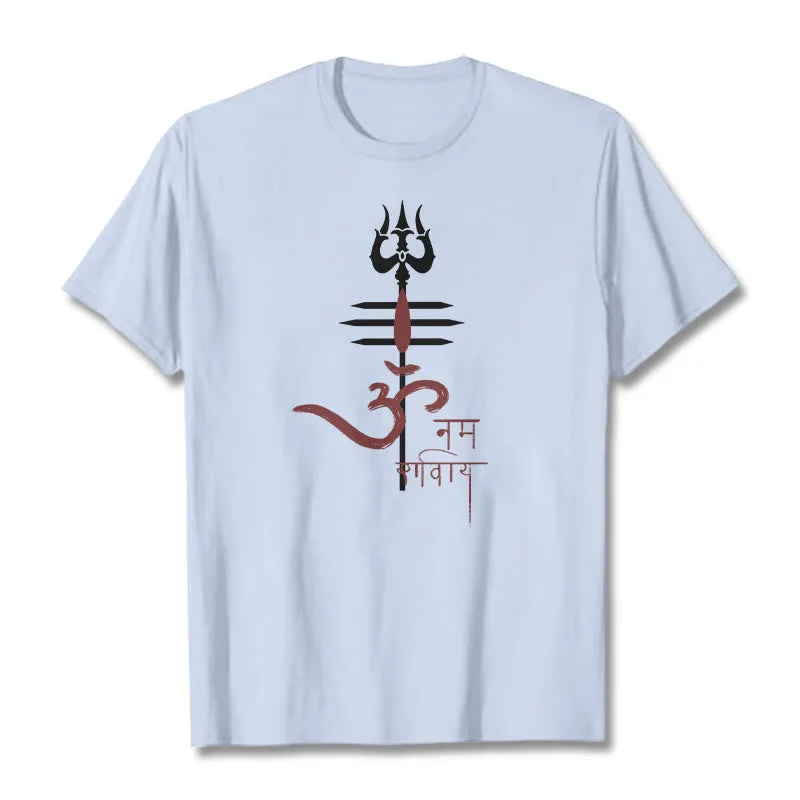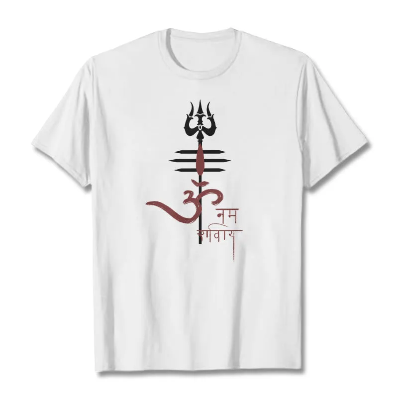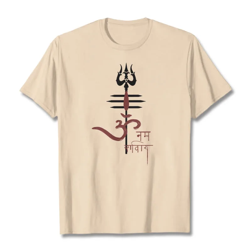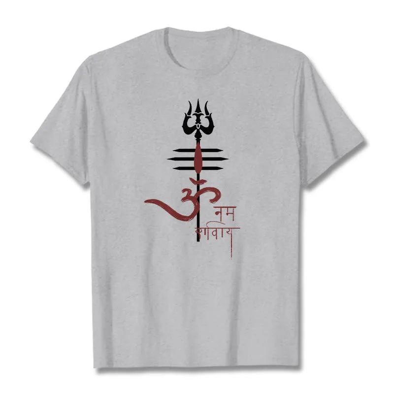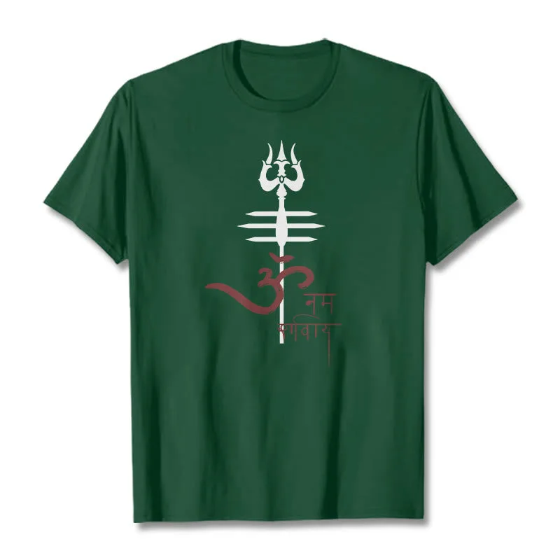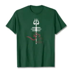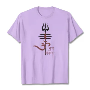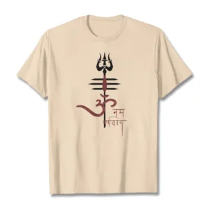 OM NAMAH SHIVAYA Trident Cotton Tee T-shirt features a spiritual design that incorporates the revered trident symbol. representing strength and protection. Made from soft. breathable cotton. this tee ensures comfort while promoting a deeper connection to the divine. The meaningful graphics serve as a reminder of devotion and inner peace. making it a perfect addition to any mindful individual’s wardrobe.