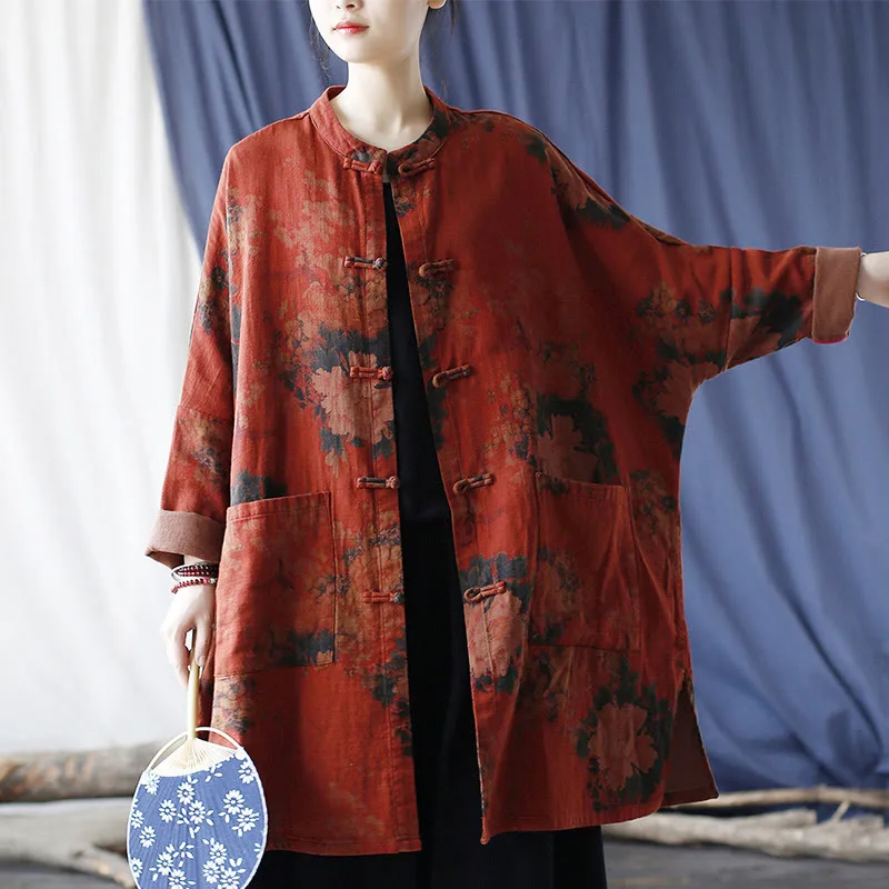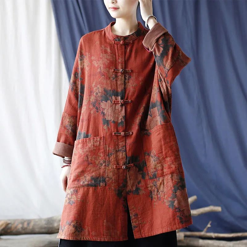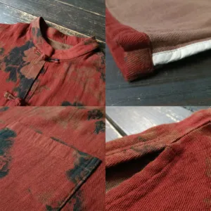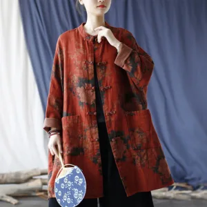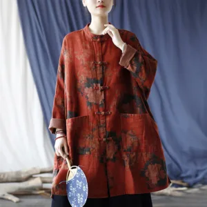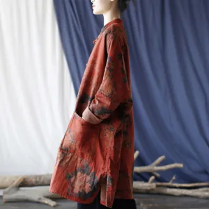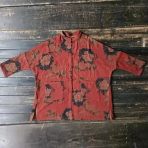 Orange Peony Flower Cotton Linen Open Front jacket features a beautiful peony floral design. Crafted from breathable cotton linen. this jacket combines elegance and comfort. The traditional frog-button closure and open front allow for easy layering. while the convenient pockets add practicality. Perfect for everyday wear. this jacket is a stylish and functional addition to any wardrobe.