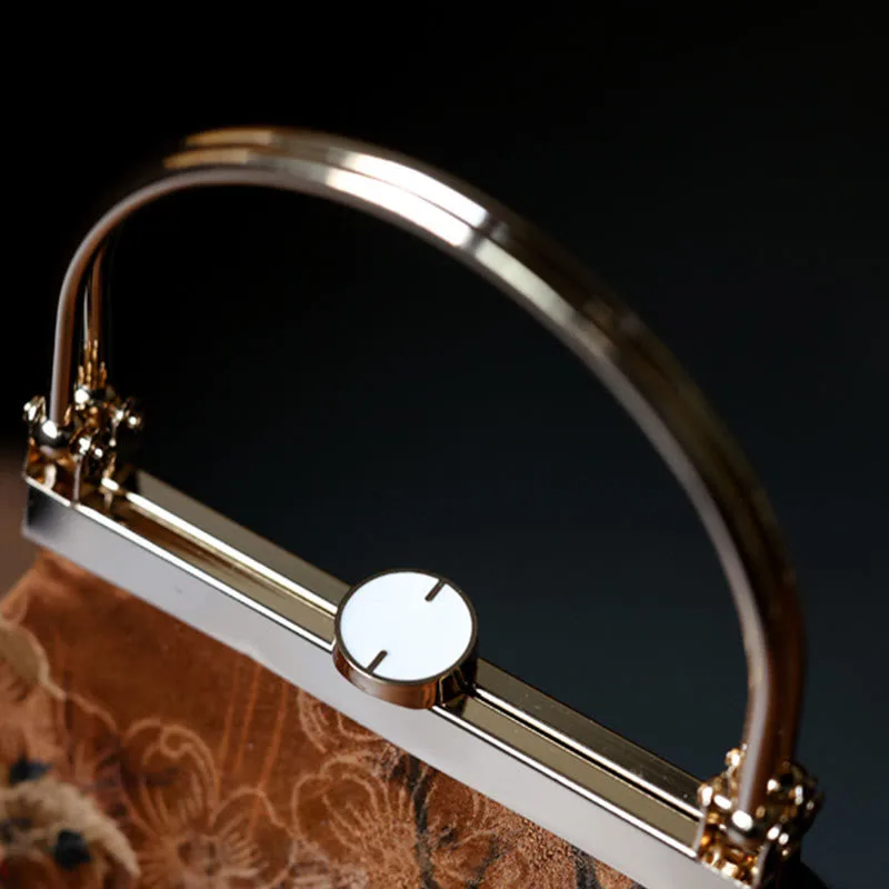Mythstone Painting of Lady of Guoguo on a Spring Outing Metal Handle Handbag