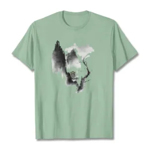 - DESIGN INSPIRATION: This T-shirt featuring designs ofmountains. a pavilion. trees. and flying geesesymbolizes tranquility. harmony with nature. and the pursuit of freedom. The mountains represent stability and strength. the pavilion signifies peace and contemplation. while the trees embody growth and resilience; together with the soaring geese. they encourage wearers to embrace their journey towards inner peace and the beauty of the natural world.