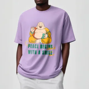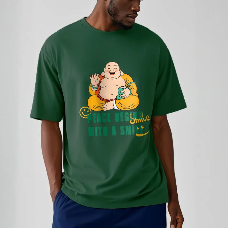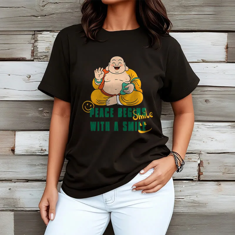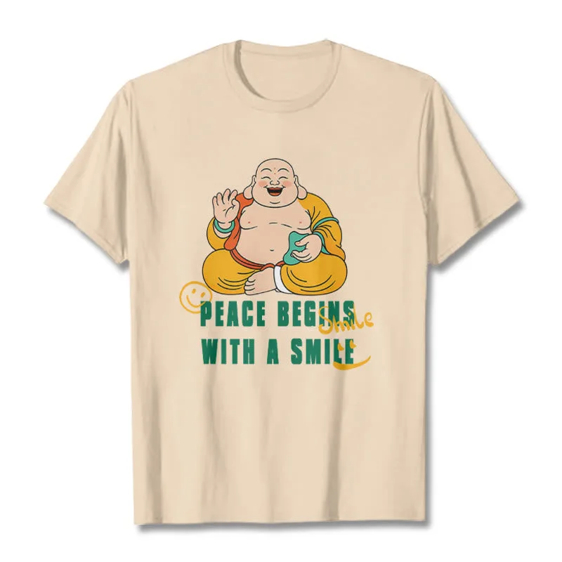 Peace Begins With A Smile Tee T-shirt features a heartwarming message promoting kindness and tranquility. Made from soft. breathable fabric. this t-shirt ensures exceptional comfort. The uplifting design serves as a gentle reminder to spread joy and peace through a simple smile. Ideal for those who seek to inspire positivity. this tee blends comfort with a meaningful message.