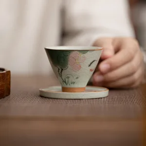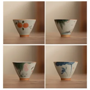 Mythstone Persimmon Boat Koi Fish Lotus Ceramic Teacup Kung Fu Tea Cup 50ml