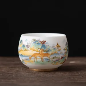 Phoenix Dragon Lotus Deer Ancient Building Koi Fish Ceramic Teacup Kung Fu Tea Cups