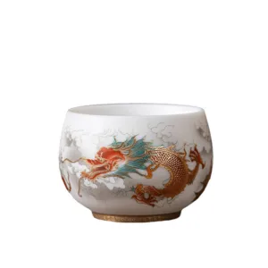 Mythstone’ Phoenix Dragon Kung Fu Tea Cups are a delight for tea enthusiasts who appreciate rich and intricate designs. These teacups feature a fusion of ancient Chinese symbols and motifs. adding a touch of cultural richness and elegance to your tea-drinking experience. Perfect for those who value traditional aesthetics in their tea rituals.