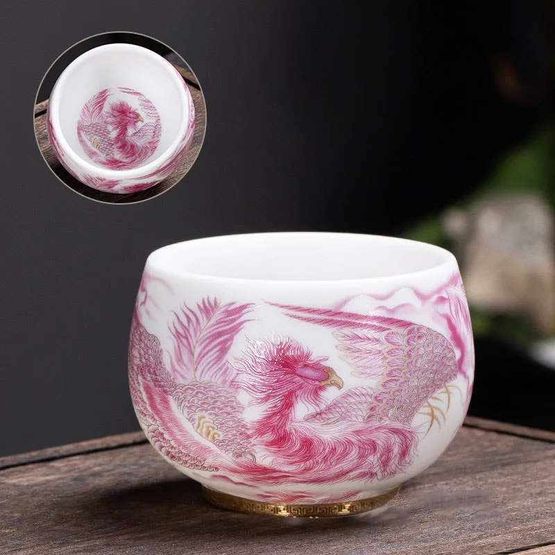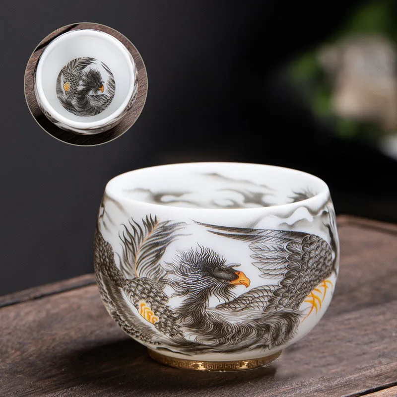 Mythstone Phoenix White Porcelain Ceramic Teacup Kung Fu Tea Cup 185ml With Gift Box