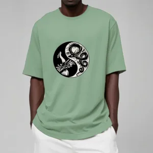 • DESIGN INSPIRATION: This T-Shirt features a Yin Yang design incorporating intricate patterns of a phoenix and swirling elements. symbolizing the balance of opposites and the cycle of transformation. The phoenix represents rebirth and renewal. emphasizing the harmony between creation and destruction in life.