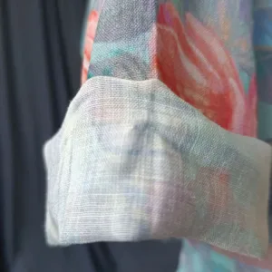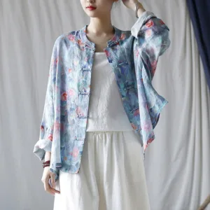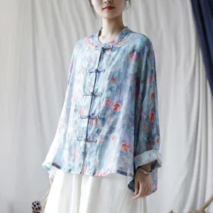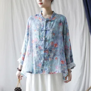 Pink Flowers Green Leaves jacket blends craftsmanship and tradition. Made from breathable ramie linen. this long sleeve jacket showcases a vibrant pink flowers and green leaves print. symbolizing renewal and vitality. The classic frog-button design adds a touch of cultural heritage. Perfect for cultural events or casual wear. this jacket embodies timeless elegance and meaningful design.
