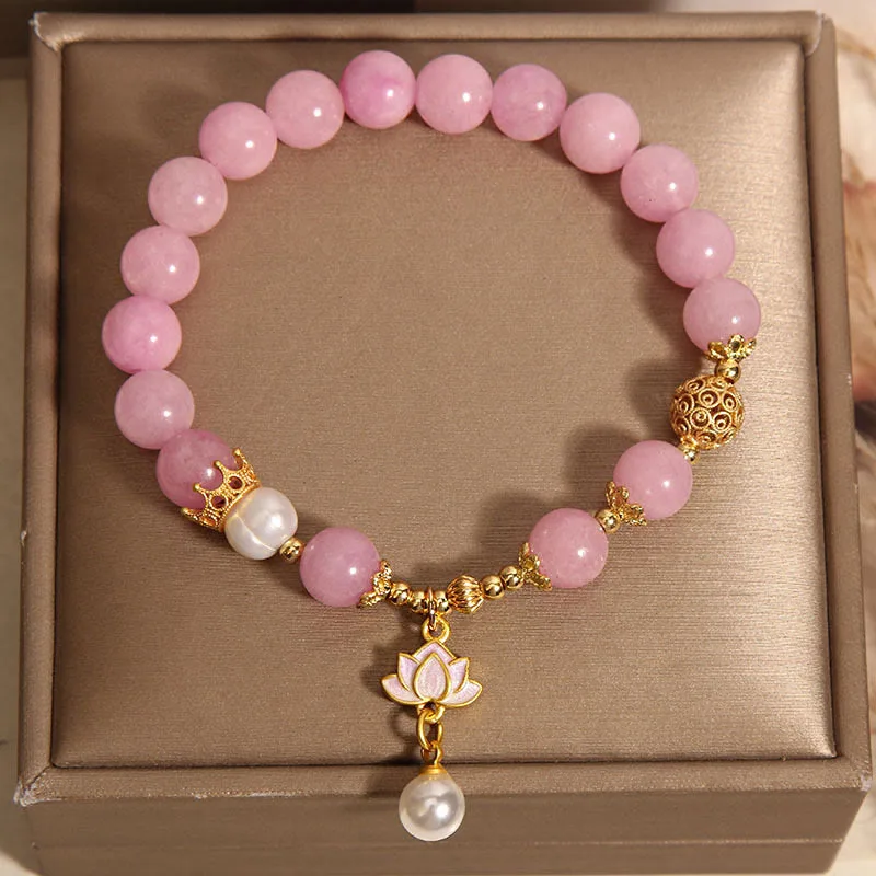 - Material: Pink Jade. Pearl. Copper Alloy