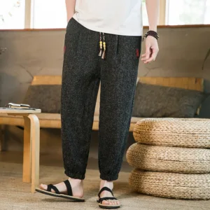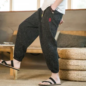 Plain Drawstring Cotton Pants offer relaxed comfort and simplicity with their breathable cotton material. Featuring a drawstring waist for a personalized fit and functional pockets for convenience. these harem pants allow freedom of movement. Ideal for grounding oneself in comfort. they combine a practical design with the ease of cotton. making them perfect for moments of calm and relaxation.