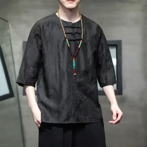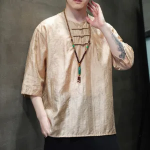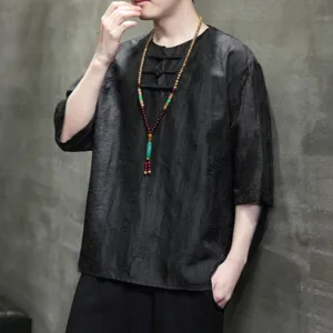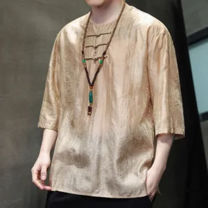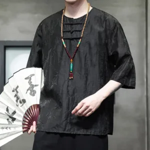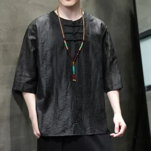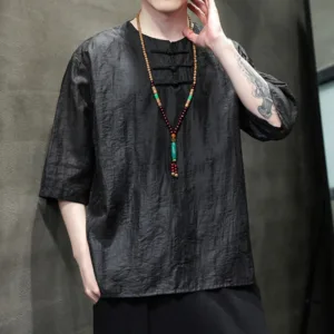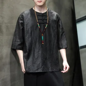 Plain Frog-Button shirt offers a simple yet elegant design with traditional frog-button closures and a crew neck. The half sleeve shirt. crafted from breathable fabric. is perfect for meditation and spiritual practices. Its plain design symbolizes simplicity and purity. encouraging a focus on inner peace and balance.