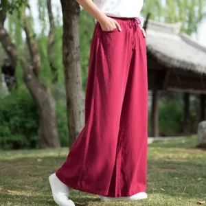 Plain Wide Leg Yoga pants offer both comfort and functionality. With a loose fit and integrated pockets. these pants are perfect for dance or yoga practices. Crafted to support movement and flexibility. the wide leg design allows for a free range of motion. making them an essential item for anyone seeking practical yet comfortable attire for their physical activities or relaxed daily wear.