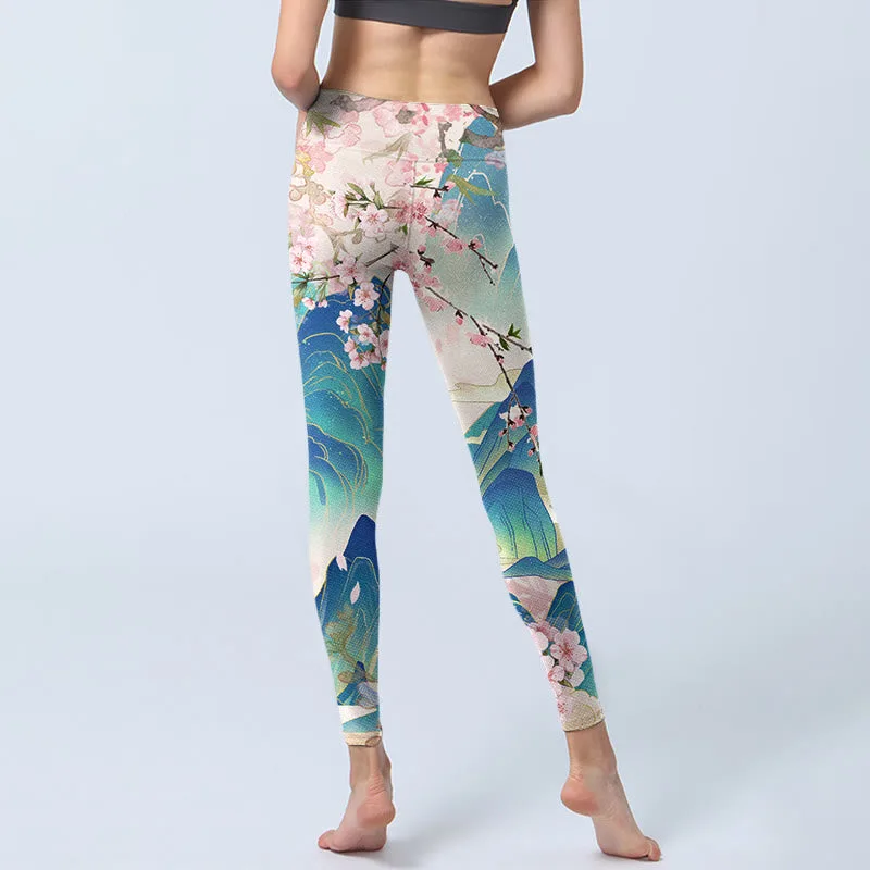 - Design Inspiration:The leggings feature a beautiful design inspired by traditional Chinese landscape art. with delicate plum blossoms and serene mountains. The soft pastel colors blend harmoniously. reflecting the calm beauty of nature. The elegant composition captures the essence of traditional Chinese aesthetics. offering a modern. artistic touch to the leggings.