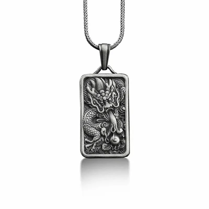 Mythstone Pure Tin Dragon Success Protection Necklace Pendant