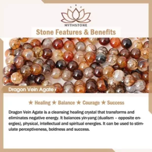 Dragon Vein Agate is a cleansing healing crystal that transforms and eliminates negative energy. It balances yin-yang (dualism – opposite energies). physical. intellectual and spiritual energies. It can be used to stimulate perceptiveness. boldness and success.