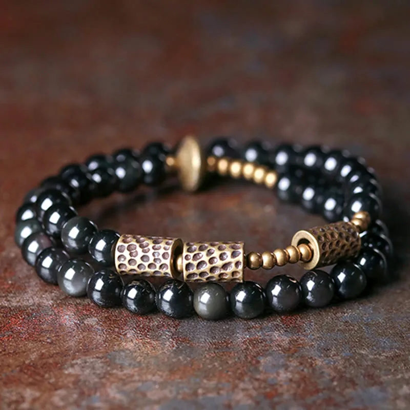 Embrace positive transformation with the Myth Stone Rainbow Obsidian Copper Love Double Wrap Bracelet. Crafted with high-quality materials. it promotes love. inner peace. and healing. The mesmerizing rainbow obsidian beads and copper accents create a beautiful and balanced accessory.
