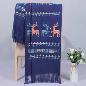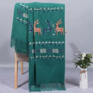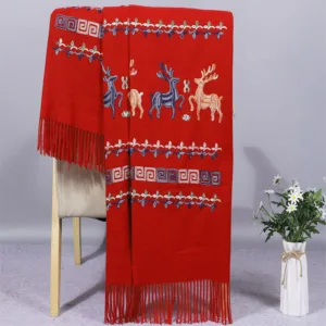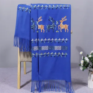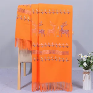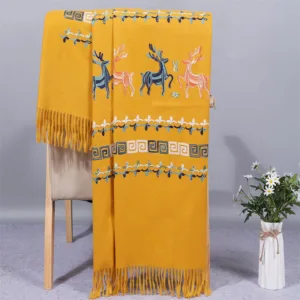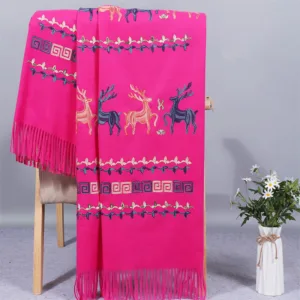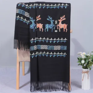 Sika Deer Rayon Fabric Shawl features a delicate Sika deer embroidery design. complemented by elegant tassels. This cozy wrap is perfect for winter and travel. providing warmth and comfort with its soft rayon fabric. The intricate embroidery adds a meaningful touch. symbolizing harmony and grace. Ideal for those seeking both beauty and practicality. this shawl offers a perfect blend of luxury and functionality.