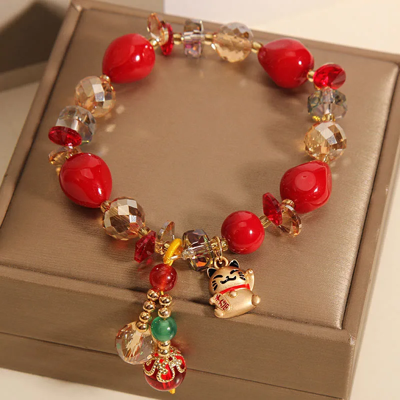 It means attracting wealth and making treasures. Zhaocai means attracting money or leading to seek wealth.